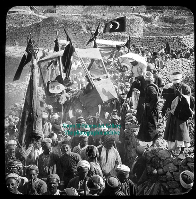 חגיגות הולדתו של הנביא מוחמד בלאג'ון. יצוין כי התושבים עדיין היו נאמנים לאימפריה העות'מאנית, 1925-1939. מקור: המשלחת האמריקאית של אוניברסיטת שיקגו.