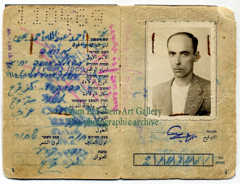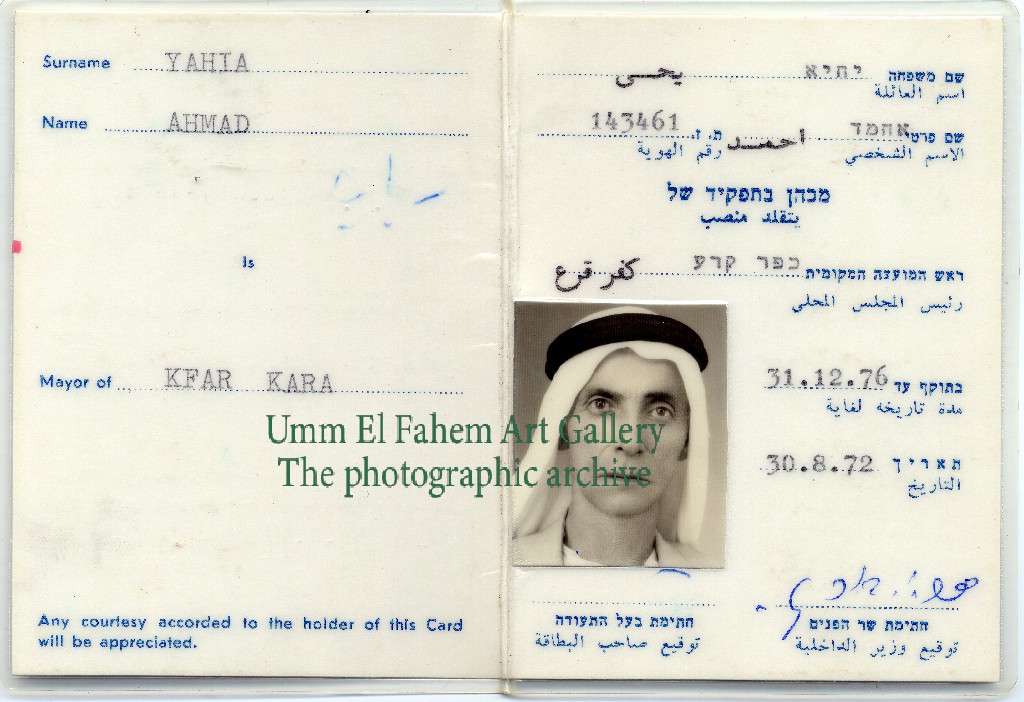 Identity card of the head of the Kfar Kara local council, Ahmed Abdullah Yahya, 1970s. Source: Al-Bir Association.