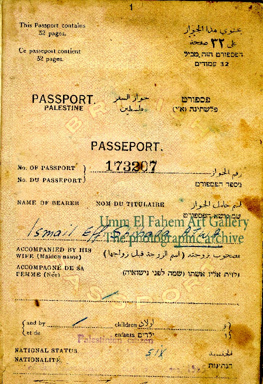אשרת מעבר מתקופת המנדט הבריטי, מאת מר אחמד עבדאללה יחיא (כפר קרע), שנות השלושים. מקור: עמותת אל-ביר.