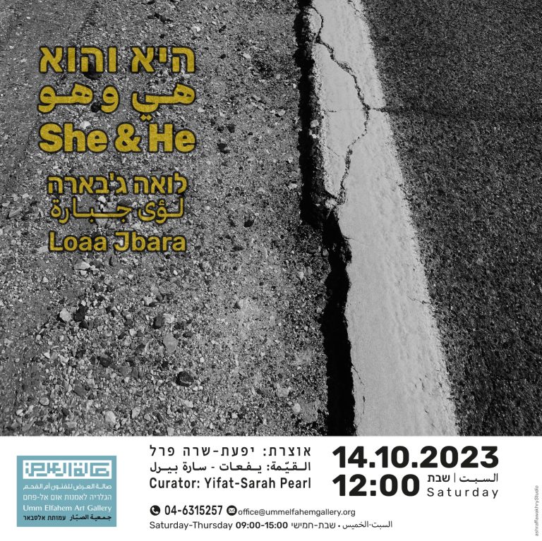"היא והוא" הוא שמה של תערוכה שעניינה היחסים בין בני זוג בתקופת האירוסין בחברה הערבית. לואה ג'בארה מתארת את החיבור בין בני הזוג מצד אחד ואת הגבולות ביניהם מצד אחר, דרך מדידה וסימון של כבישים, שבהם עוסק הארוס שלה. "היא" מטייבה ו"הוא" מירושלים. כל אובייקט בתערוכה מסמל היבט אחר הקשור לתקופת האירוסין שהם חווים יחד בימים אלו, כאשר הכבישים מחברים ביניהם וסוללים עבורם את הדרך לעתידם המשותף.