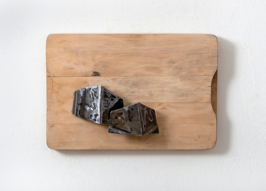 Roadside, a new exhibition by artist and teacher Yoram Afek, presents pieces from several of his work cycles from the last few years. The works bring together materials typically associated with “high art” and objects that have lost or fulfilled their function, things he picked up from the roadside and brought to his studio.